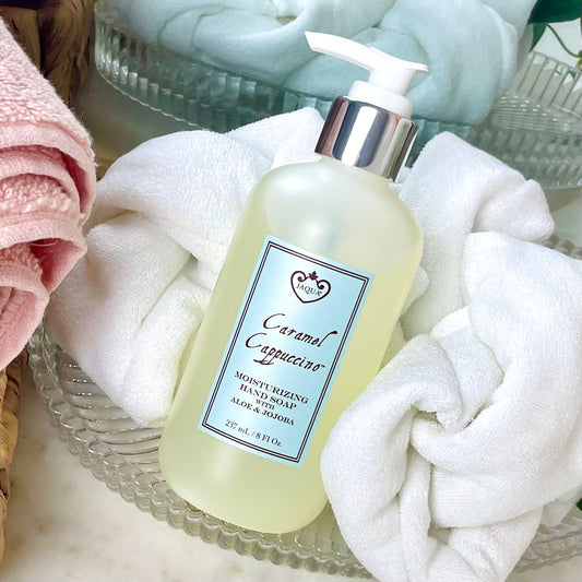 Jabón de manos con sabor a capuchino y caramelo