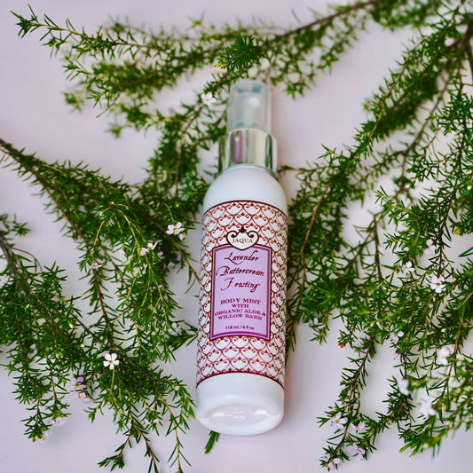 Bruma corporal hidratante con glaseado de crema de mantequilla y lavanda, aloe orgánico y corteza de sauce